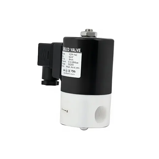 La serie DELCO YCFP è una valvola solenoide ad azione diretta progettata specificamente per applicazioni altamente corrosive. Dotato di corpo in PTFE e struttura di diaframma di isolamento, È resistente a acidi e alcali forti. Funziona efficacemente a pressione zero (0,00 MPa) fino a 0,15MPa,rendendolo essenziale, componente ad alta affidabilità per un controllo preciso nei processi chimici e nei sistemi di dosaggio.